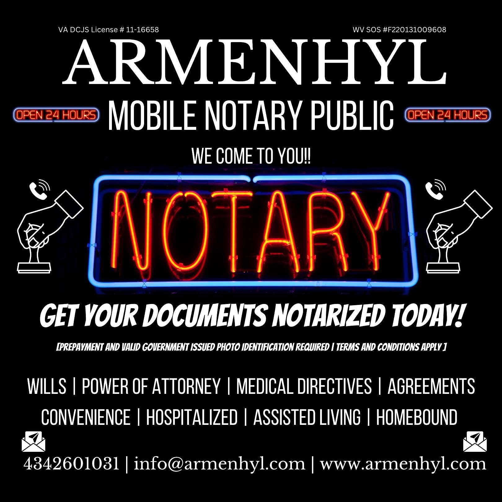 In addition to Private Process Service ARMENHYL also provides Private Investigation, Security Guards & Patrols and Mobile Notary Public Signing services!